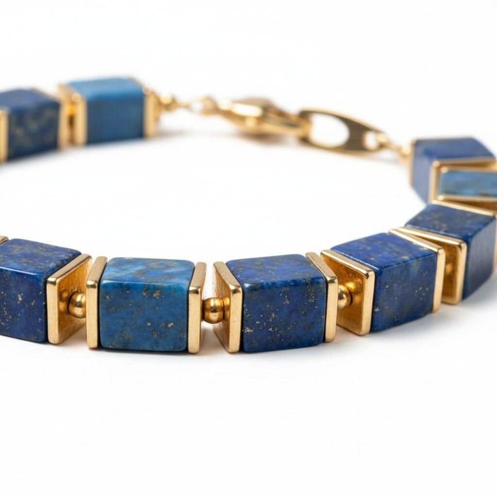 Браслет из коллекции "КУБ", вдохновленной древнеегипетским искусством. Мы постарались передать геометрическую строгость форм и символику камня и цвета. Отсылка к сакральным знаниям фараонов.