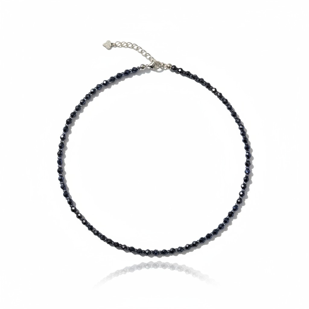 Чокер из натурального сапфира ААААА в огранке, глубокого синего цвета с проставками из марказита. Замок из серебра 925 пр.