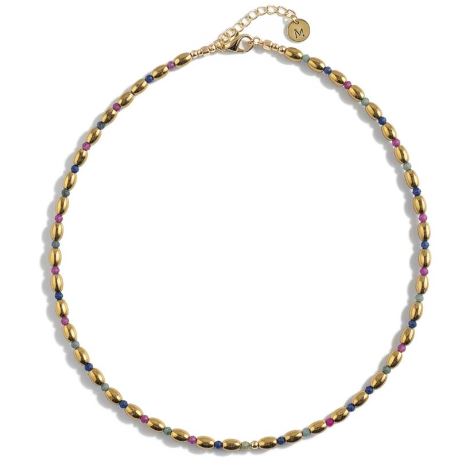 Тонкая нить из гематита в форме зёрен. Гематит — минерал с холодным металлическим блеском. Его носили жрецы и царицы как защиту от зла.