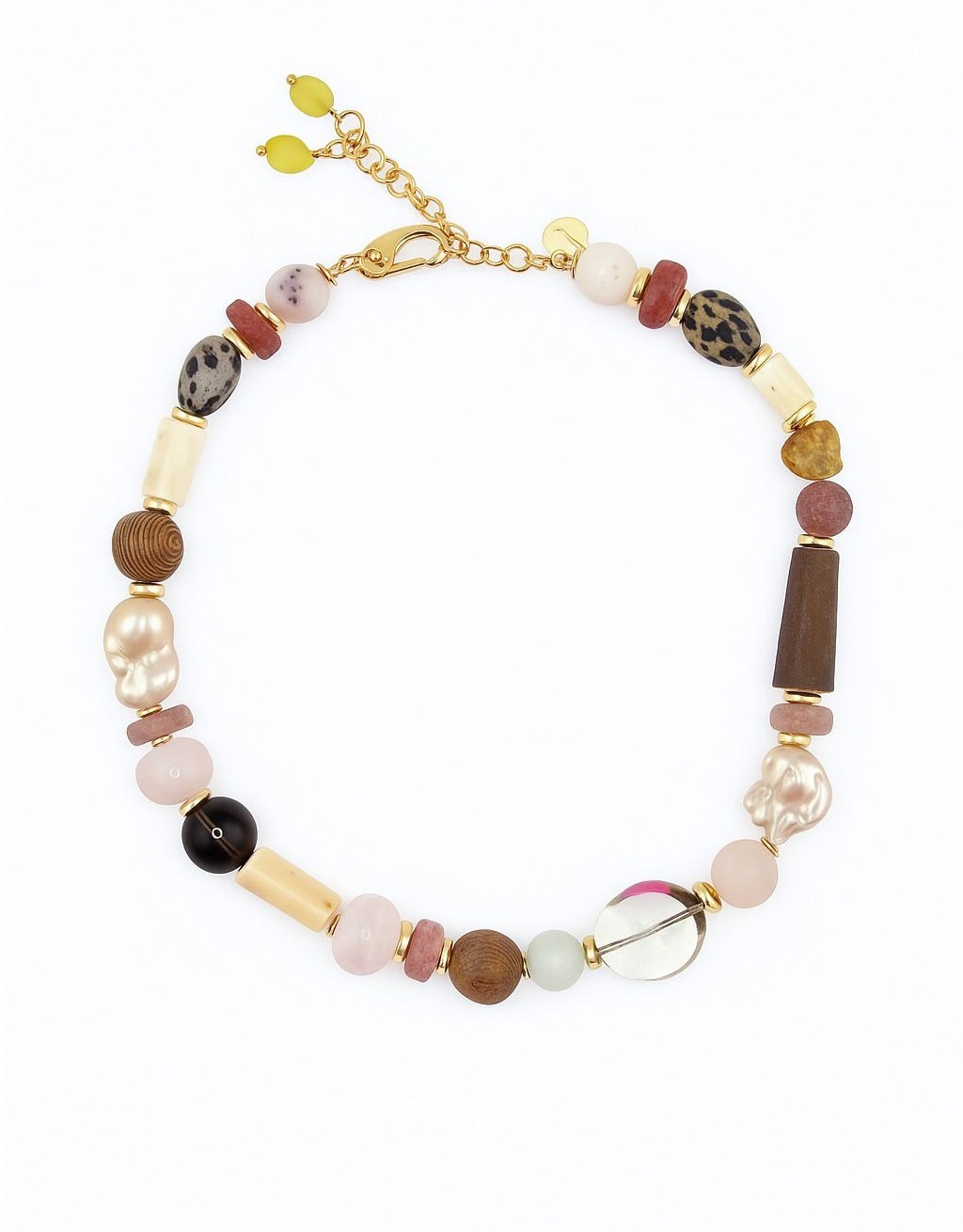 Микс из разнообразных крупных камней: хрусталь, жемчуг, яшма далматин, коралл, клубничный кварц, топаз.