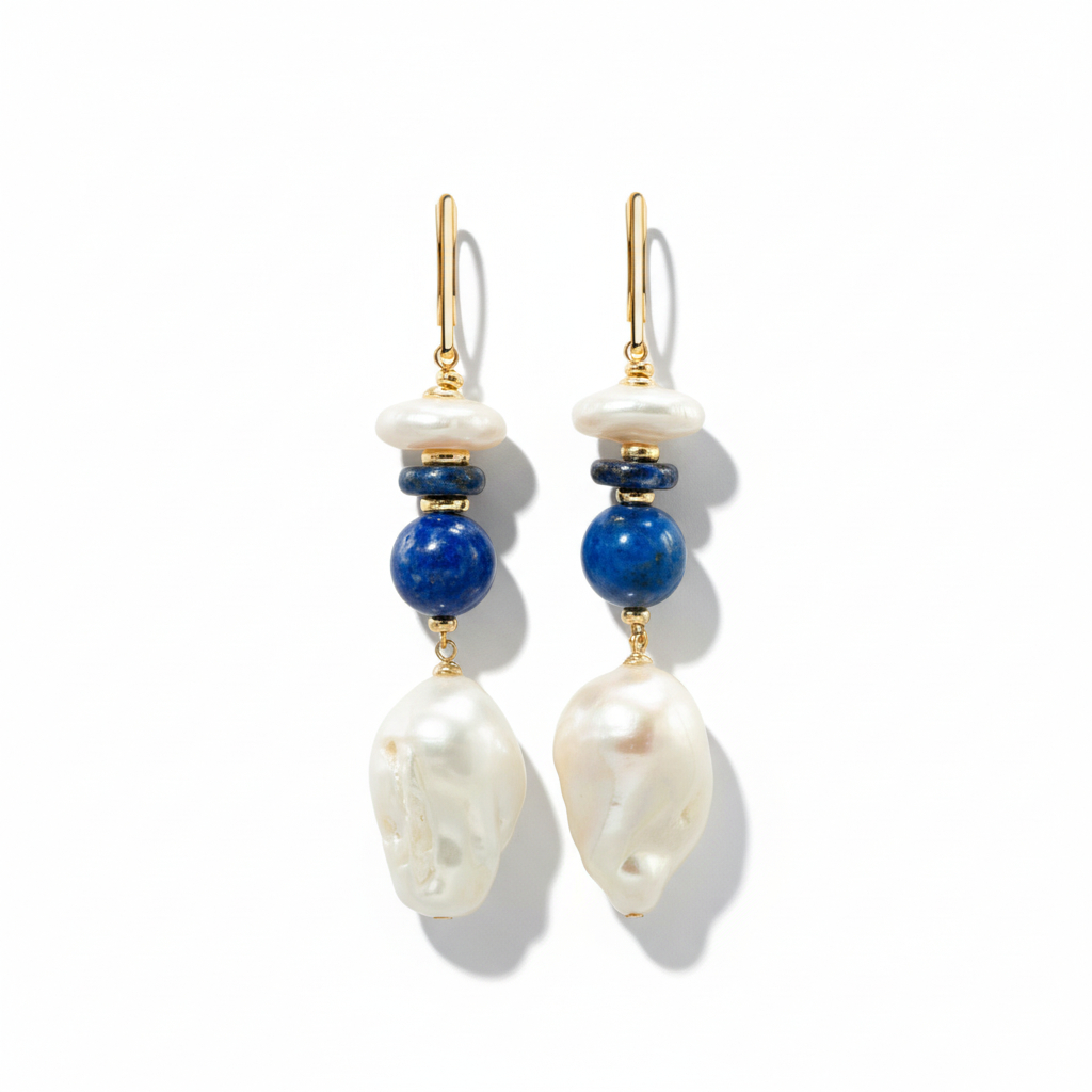Ожерелье выполнено из Лазурита (Афганистан) ААААА, украшено эксклюзивной жемчужиной Барокко (ААААААА)