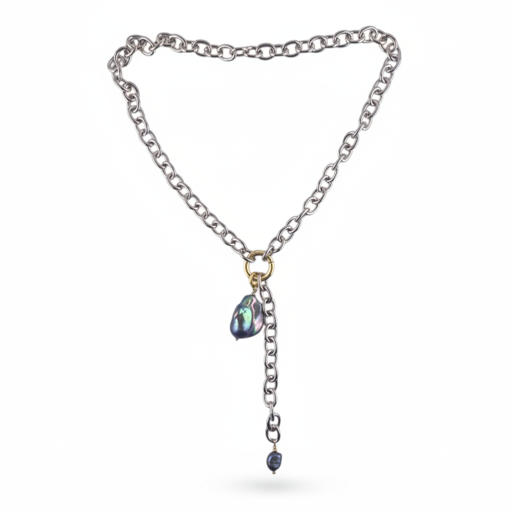 Цепочка из юв. сплава с нажимным замком и подвеской из Барочного жемчуга Таити класса 7А.